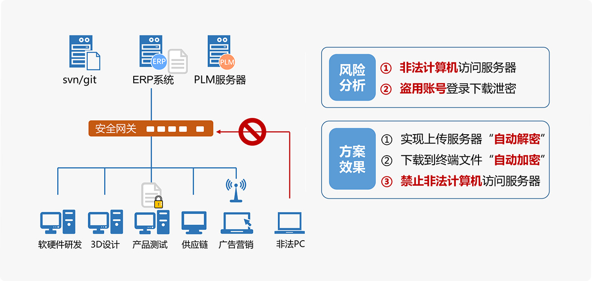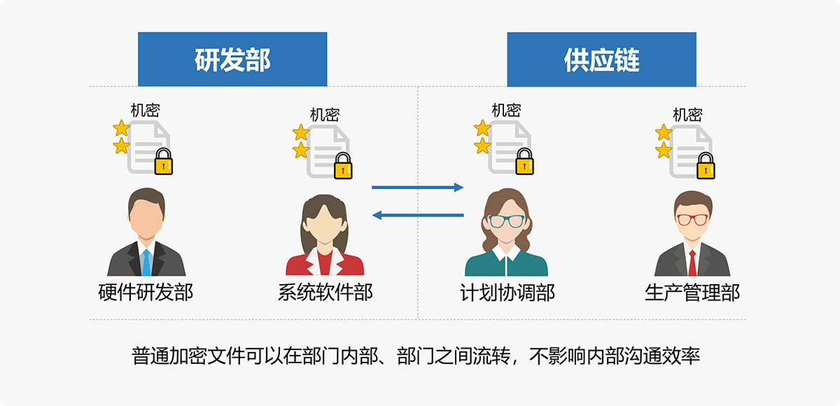 實現(xiàn)重要資料加密的情況下,文檔的流通習慣不變,確保加密資料在企業(yè)內部各個部門之間,與供應商之間,暢通無阻,不增加溝通成本