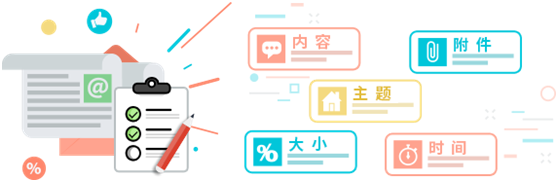可通過(guò)收件人、發(fā)件人、主題、附件名、郵件大小等關(guān)鍵字設(shè)置策略來(lái)控制郵件收發(fā),防止企業(yè)的重要信息通過(guò)郵件方式泄露。